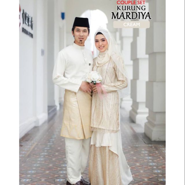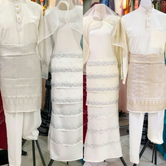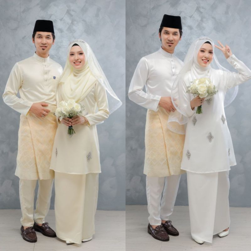 Couple Baju Nikah Cream Dan Offwhite Kurung Pahang Arra Shopee Malaysia